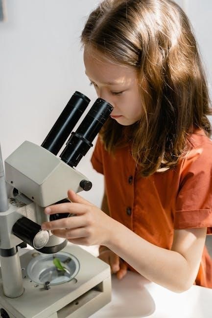 Brightfield and stereo microscopy are explored in depth, with detailed instructions on sample preparation, focusing, and image interpretation․ Emphasis is placed on understanding magnification, resolution, and the proper use of microscope components․ Practical exercises guide students through observing diverse biological samples, fostering a deeper appreciation for cellular structures and their functions․ The guide also stresses the importance of careful observation and accurate documentation of findings․