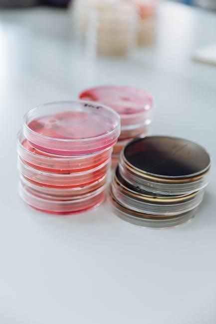 Progressive advancements included differential staining (Gram stain) and biochemical tests, enabling precise bacterial identification. Modern PDF lab manuals, like those from Pearson Education, now integrate these historical foundations with contemporary molecular techniques, showcasing a continuous refinement of microbiological practices for both education and research.
